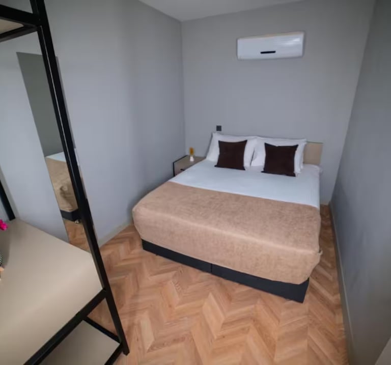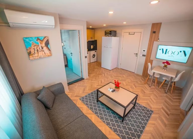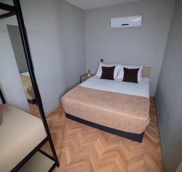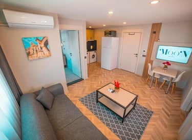 Deluxe Apart Daire, geniş ve ferah 62 m² yaşam alanı ile aileler ve arkadaş grupları için mükemmel bir konaklama deneyimi sunar. Bir Queen yatak, iki tek kişilik XL yatak ve bir çift kişilik çekyat ile toplam 6 kişiye kadar konaklama kapasitesi vardır. Tam donanımlı mutfak, modern banyo, yüksek hızlı Wi-Fi ve bahçe manzarasıyla keyifli bir ortam yaratır. Ücretsiz otopark ve pratik konum avantajı sunar.