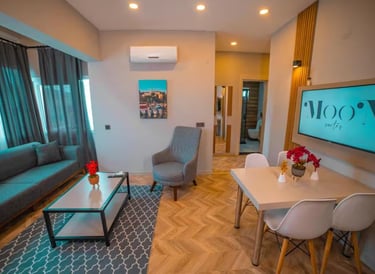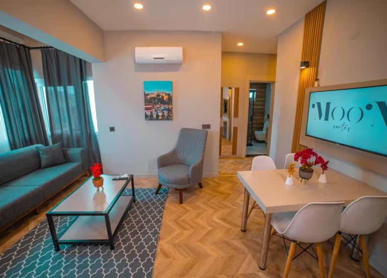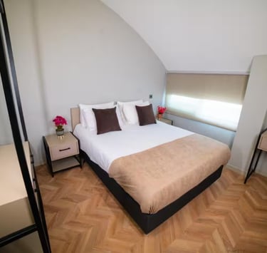 Deluxe Çatı Katı Süiti, 62 m² geniş alanı ve özel balkonu ile ayrıcalıklı bir konaklama deneyimi sunar. İki Queen yatak ve bir çift kişilik çekyat ile 6 kişiye kadar konaklama kapasitesine sahiptir. Modern banyo, tam donanımlı mutfak, yüksek hızlı Wi-Fi ve bahçe manzarasıyla ferah bir ortam yaratır. Üst kat konumu, daha sessiz ve keyifli bir yaşam alanı arayan misafirler için idealdir. Ücretsiz otopark mevcuttur.
