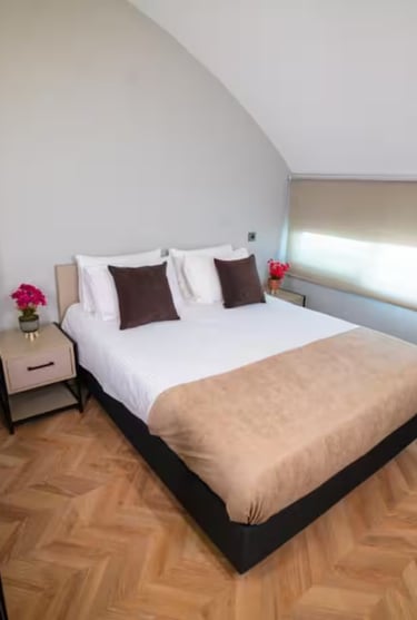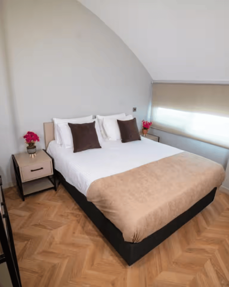 Located on the top floor, the Deluxe Penthouse Suite offers 62 m² of elegant living space and a private balcony. Equipped with two Queen beds and a double sofa bed, it accommodates up to 6 guests. The suite features a fully equipped kitchen, modern bathroom, high-speed Wi-Fi, air conditioning, and serene garden views—perfect for guests seeking comfort and privacy.