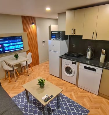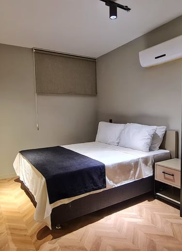 This cozy 1-bedroom apartment offers an efficient and comfortable layout featuring a Queen bed and a double sofa bed, suitable for up to 4 guests. The suite includes a fully equipped kitchen, modern bathroom, high-speed Wi-Fi, air conditioning, and complimentary parking. Located on the lower ground floor, it provides a calm and quiet atmosphere—ideal for short and long stays.
